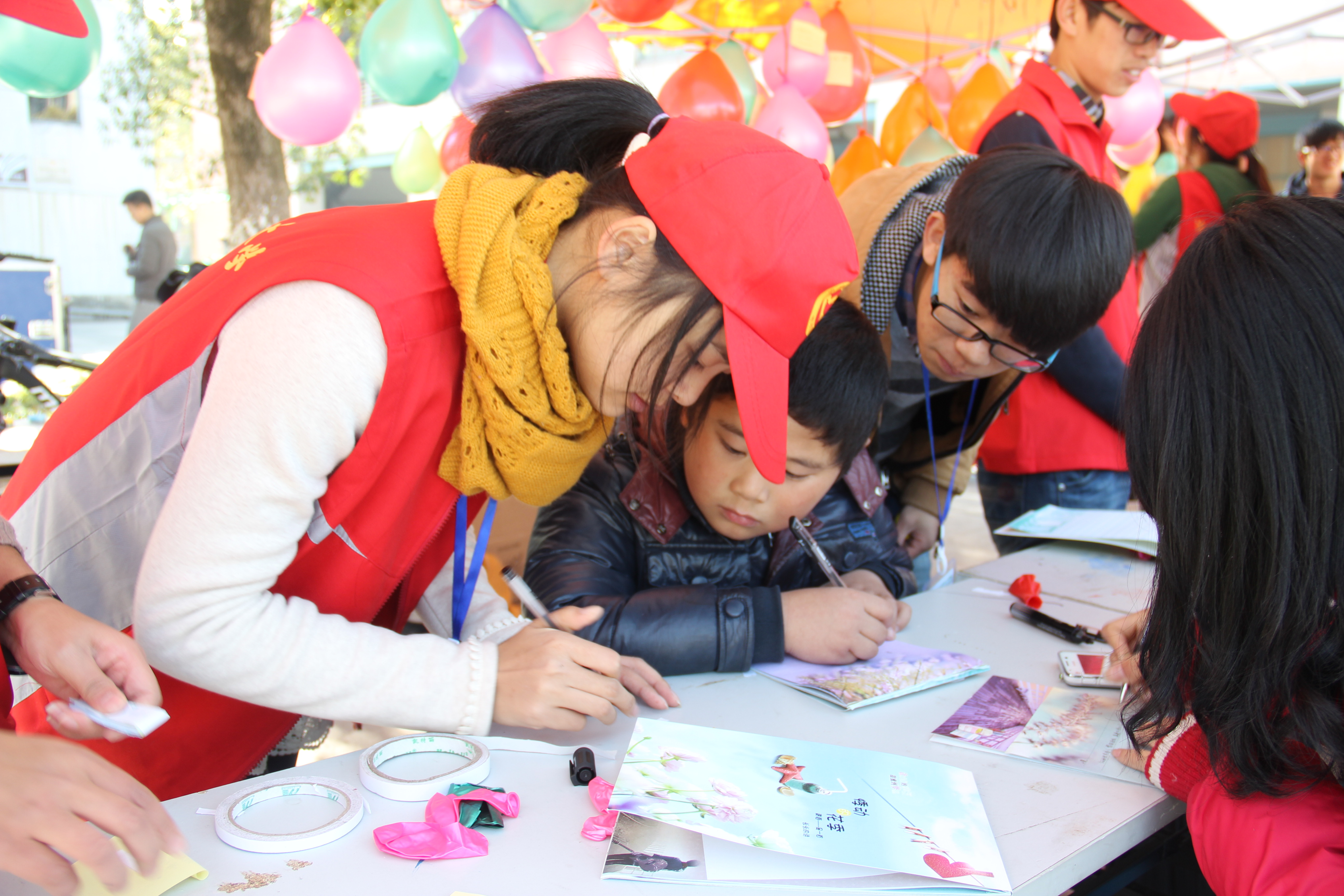 本次活动分为四项:制作彩烛、替楼管阿姨代班一小时、送气球给想感恩的人、刷海报板。活动开始,现场的工作人员一部分在加热石蜡,一部分在帮学生倒融化的石蜡、插烛芯,还有一部分帮助学生写爱心留言,场面十分热烈。