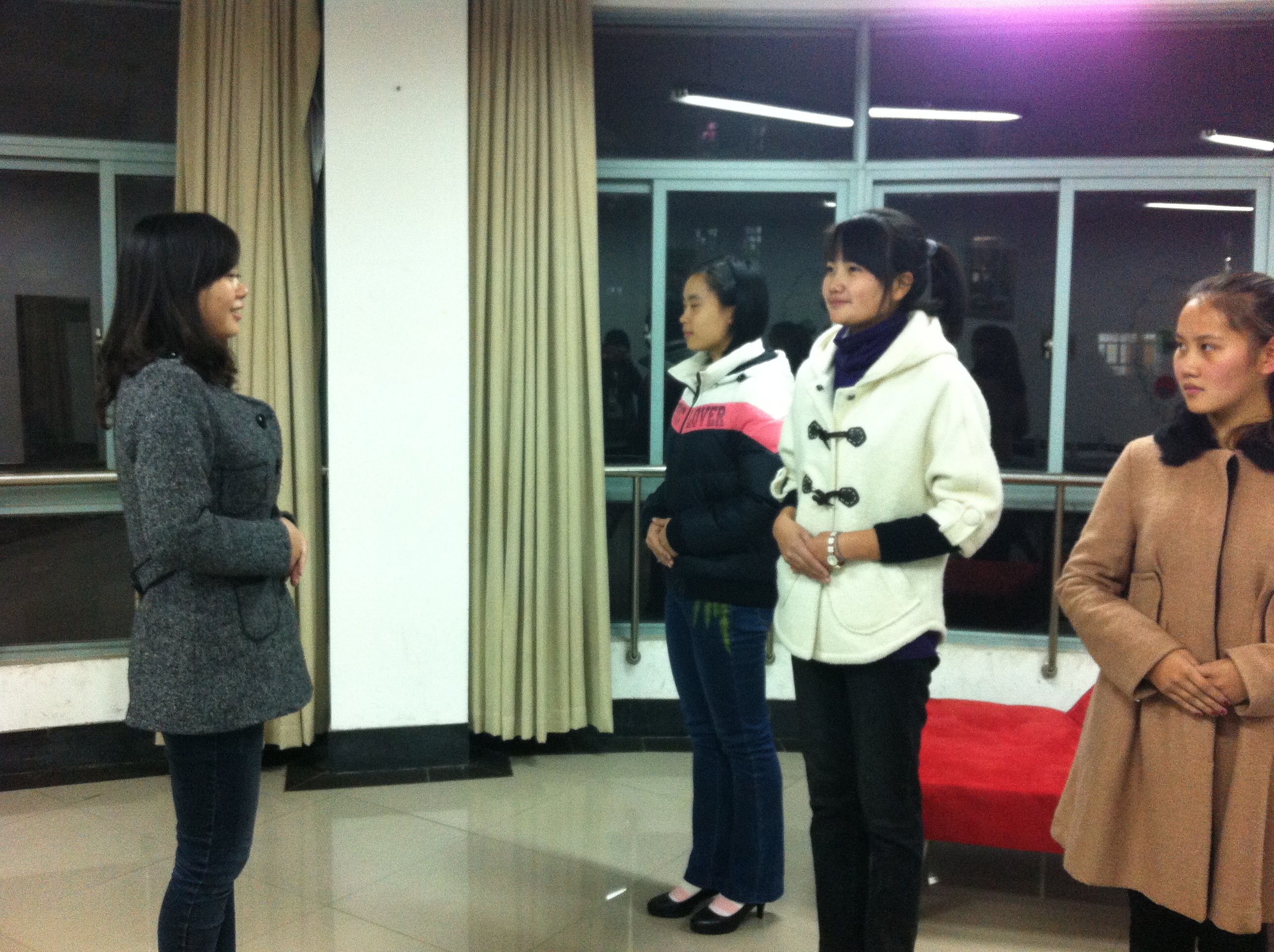 各种大型活动中的礼仪工作,12月3日晚,院礼仪队邀请上一届的礼仪队队长张姣姣在2号楼活动室对礼仪队成员进行了礼仪培训。
