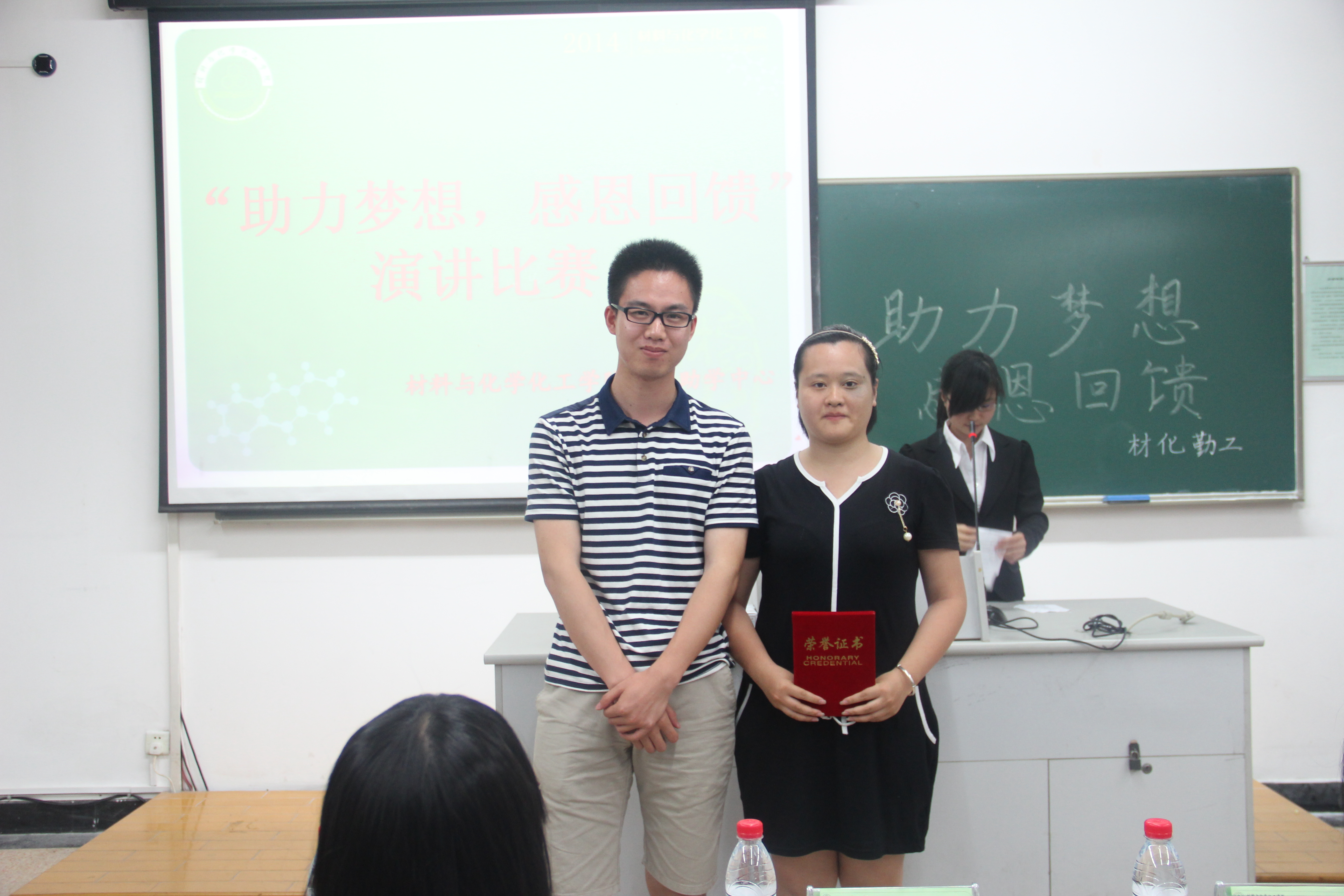 勤工助学中心在A楼307室举办了“助力梦想·感恩回馈”演讲比赛。高分子111班的吴越、化学121班的唐晓阳和付清清受邀担当了本次比赛的评委。