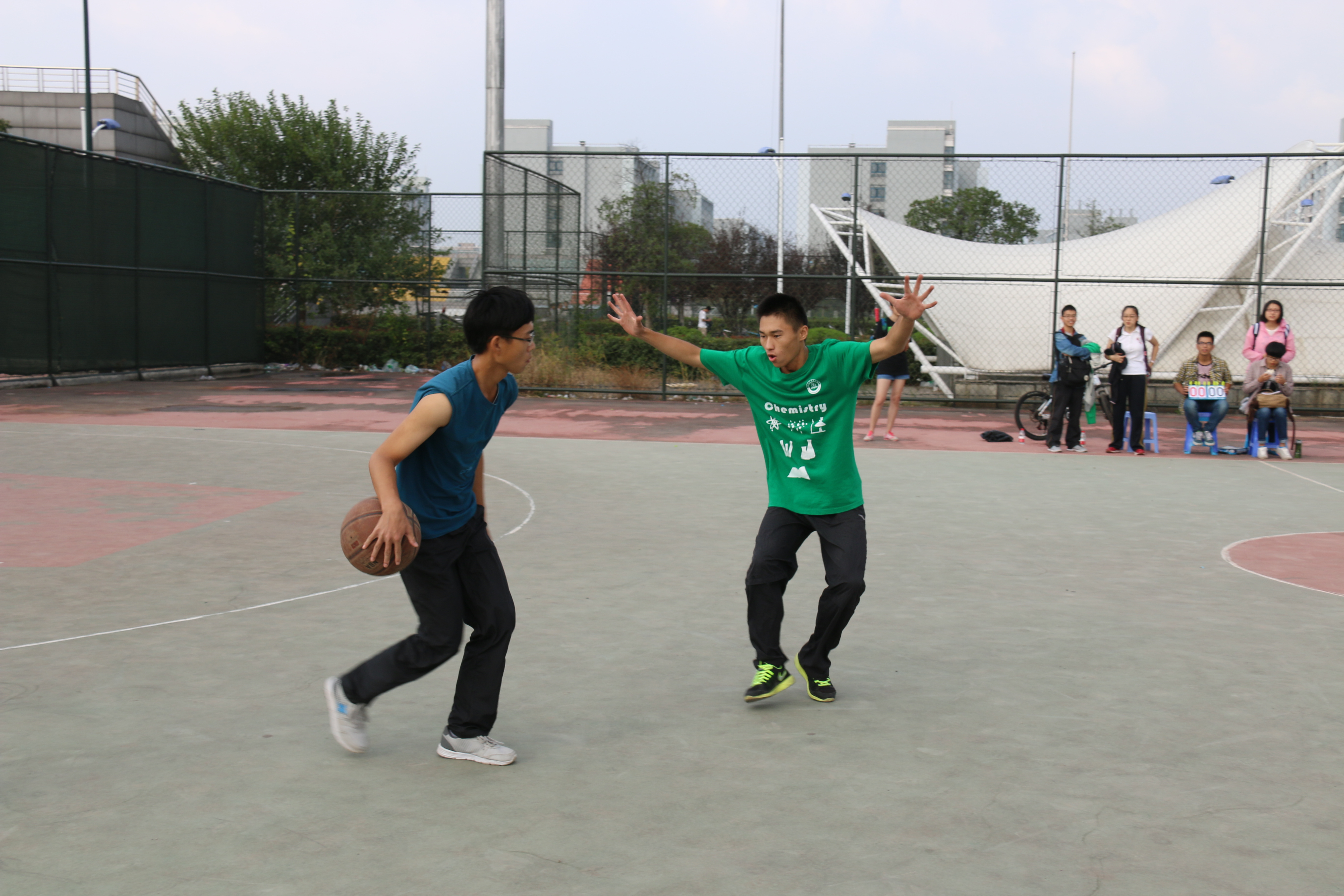 比赛伊始,两队实力旗鼓相当,难分上下,为摆脱迟迟未下一城的状况,化师142班勇猛进攻,夺下第一个进球。应化141班也不甘示弱,凭借队员之间默契的配合,利用抢断和快攻等方法,奋起直追,取得了领先的地位。赛场上,两班队员你争我夺,相互牵制,双目直盯那枚跳跃的篮球,不管是激烈地抢篮板,还是积极地防守,队员们丝毫不敢懈怠。恰恰就是这些激情四射的场面为本场比赛营造了一种紧张激烈的氛围。即使在比分胶着的争夺中,也偶有队员出现幽默性的失误,为这场紧张的比赛增添了一抹欢声笑语。球场上的表现精彩绝伦,球场边也是一道亮丽的风景线,观战同学们的声声加油,响彻整个篮球场,显现了整个团体的凝聚力量。随着一声哨响,球场上的队员们以一颗不服输的心坚持到了最后一刻,随后双方队员相互握手,微笑着相约下一次球场上的对决。