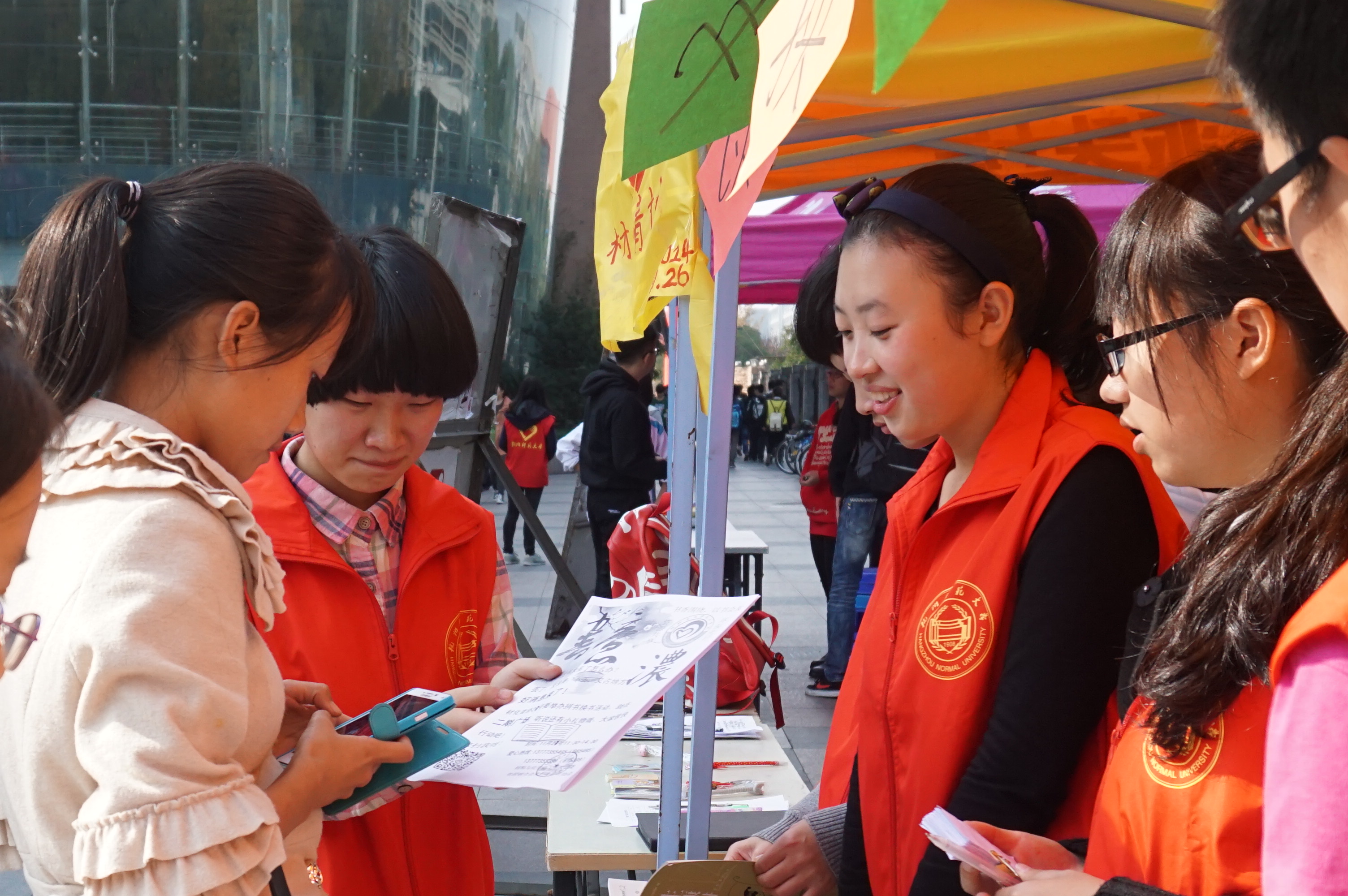 志愿者向同学们宣传本次活动