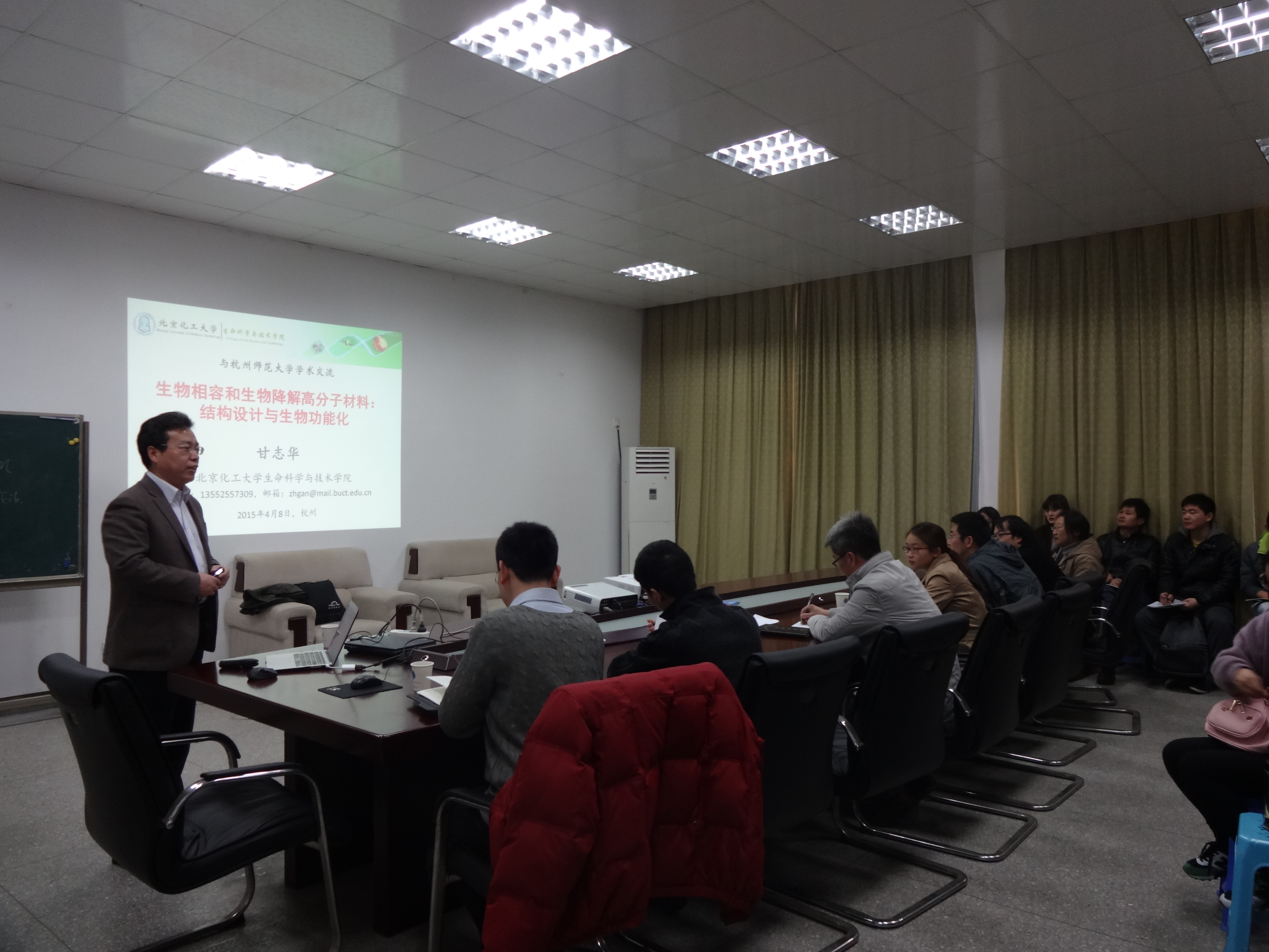 4月8日下午3:00,应真人百家乐 李勇进教授的邀请,北京化工大学甘志华教授来真人百家乐 作了题为“生物相容和生物降解高分子材料——结构设计与生物功能化”的精彩报告。讲座真人百家乐 李勇进教授主持,真人百家乐 相关专业30余名师生聆听了讲座。