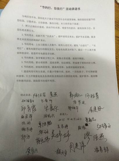 “节约型,你我行”承诺书