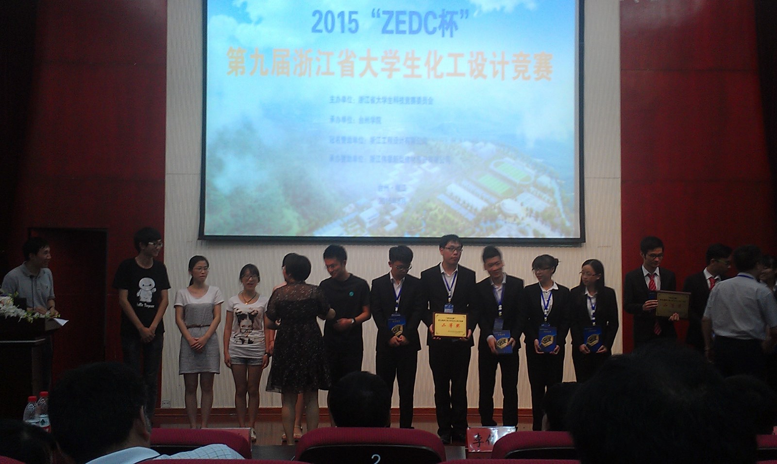 近日,2015年“ZEDC杯”第九届浙江省大学生化工设计竞赛决赛在台州真人百家乐 落下帷幕,本届浙江省大学生化工设计竞赛共有28所高校共134支队伍参赛,共设特等奖1名(可空缺);一等奖9名;二等奖19名;三等奖30名。我校共有两支参赛队伍,均进入了决赛,我校“Summer”代表队(指导教师:宋艳江、周文君、羊海棠,队员:吴晔明,毛烨烨,朱晓婷,项叶君,姜伟)荣获二等奖, “Winter”队(队员:谷雨,陈倩倩,徐冰倩,吴梦婷,顾思敏)获得三等奖,为三个多月以来的紧张设计画上了圆满的句号。