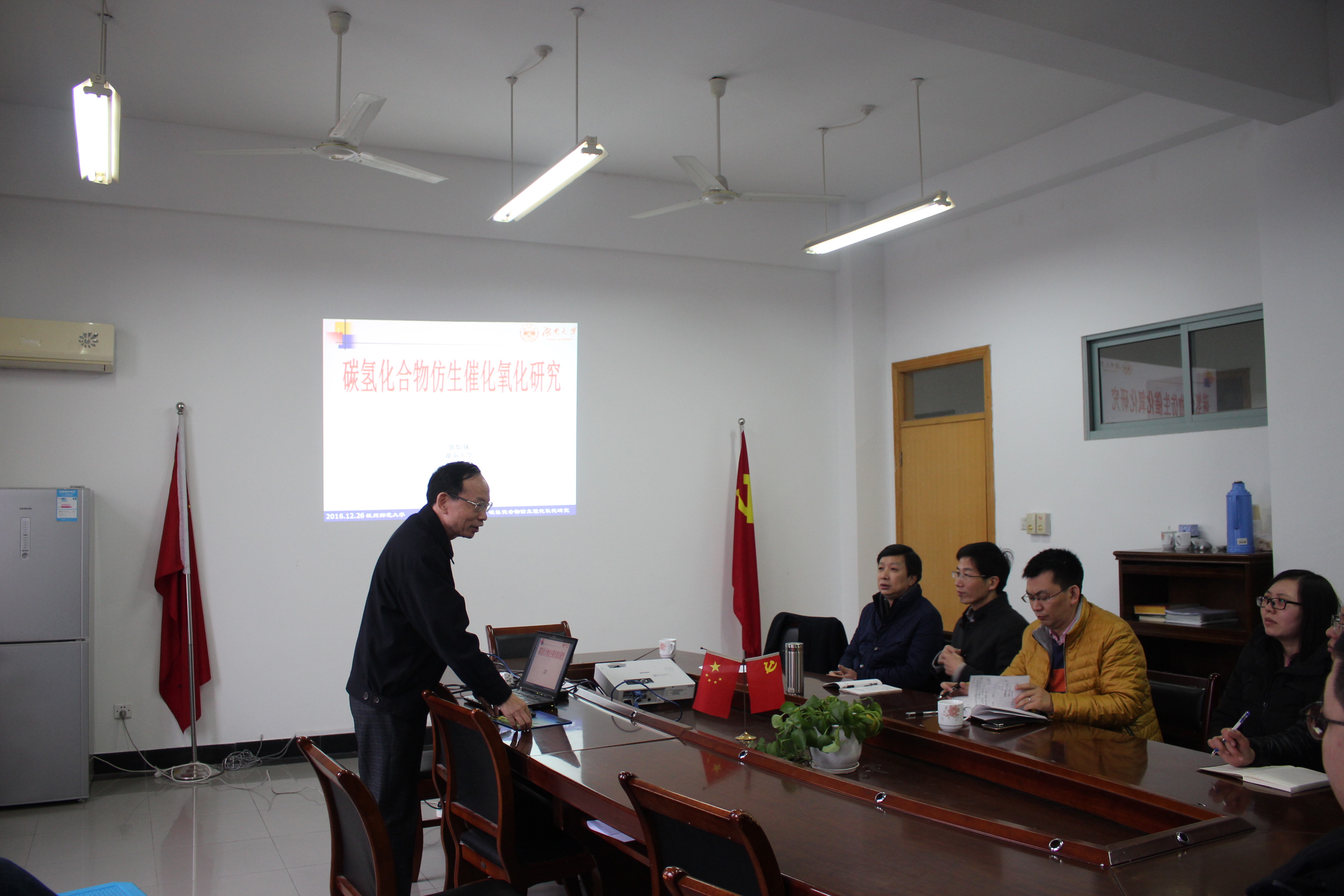 12月26日下午2:00,湖南大学化学化工真人百家乐 二级教授、博士生导师、先进催化教育部工程研究中心主任,享受国务院政府特殊津贴专家郭灿城教授受邀在D-408室作了题为《碳氢化合物仿生催化氧化研究》的报告。材化真人百家乐 教师、研究生参加了报告会。