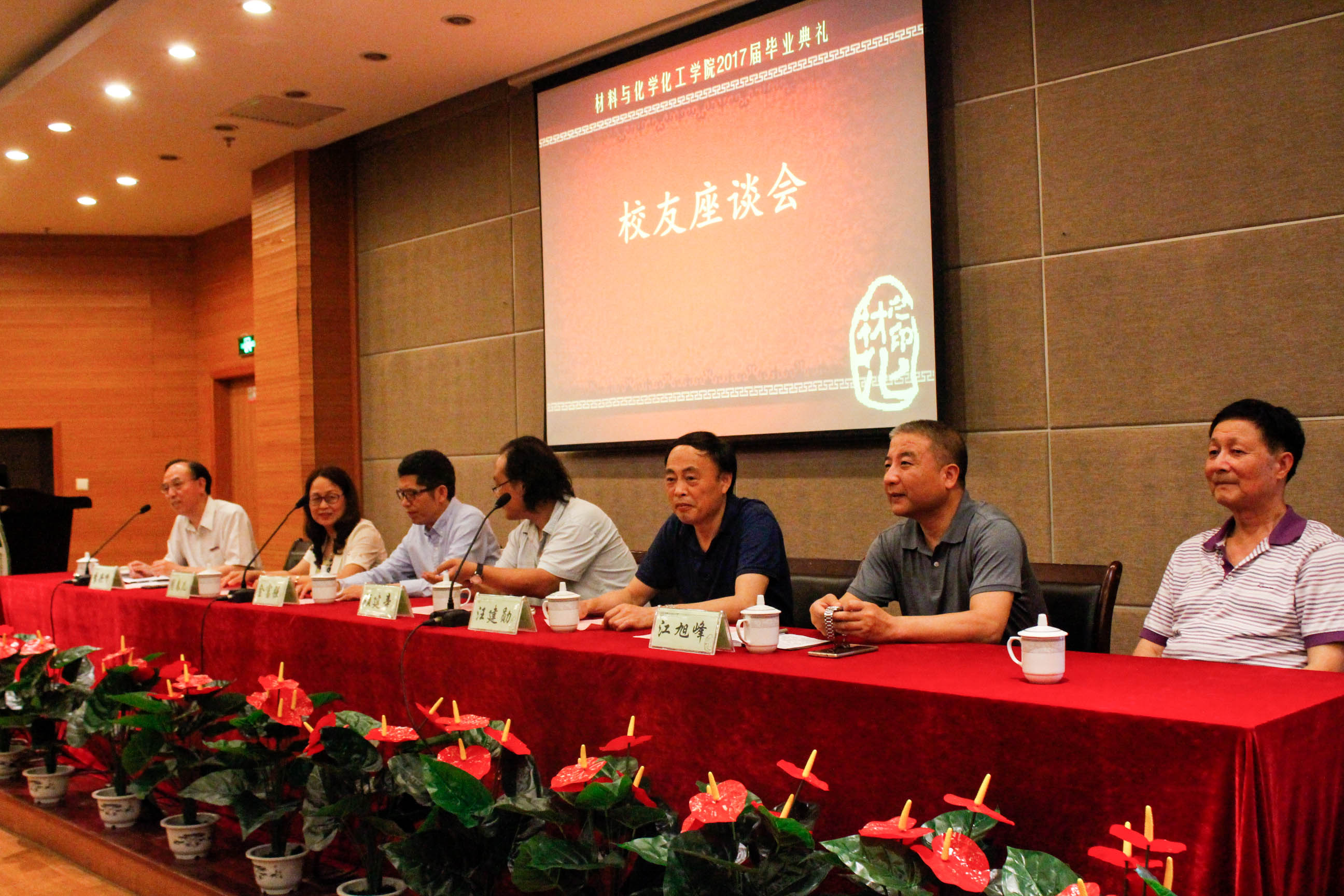 下午,校友在行政楼叙伦厅与2017届毕业生进行了交流。校友们顺次发言,向毕业生们讲述了自己在求学、工作过程中的经历和感悟。顾建辛校友告诫师范专业毕业生们,做老师要有寒窗孤灯的耐性与坚韧,要懂得仰望星空的浪漫,更要明白脚踏实地的重要性。他勉励同学们要在以后的人生中不断攀登,寻找新的目标,保持激情。金富强校友作为毕业生们在创新创业之路上的学长,鼓励同学们去追求自己认定的价值,学会“沉得住,静得下”。汪建勋校友则表达了对母校的怀念以及回家的激动心情,他对大学同学间可贵的情谊抒发了感慨,也向同学们阐述了建立目标的重要性。周春儿校友向同学们的顺利毕业表达祝贺,并提出进入社会后同学们需要提高的三项综合素质:态度、能力、情感。座谈现场,毕业生们纷纷表示获益匪浅。