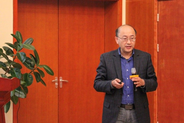随后正式开始大会学术报告。雷爱文教授就脱氢氧化偶联反应领域的研究进行分享。雷教授从氧化、还原、偶联反应等最基本的概念引入,层层递进。随后,从绿色可持续发展角度出发,详细系统地介绍了其课题组在氧化偶联反应方面所作的工作。报告结束后,雷教授与其他与会的老师和学生就偶联反应策略的普适性、工业应用前景等方面的问题展开了热烈的讨论。紧接着,邵志会教授进行了《手性分子的选择性精准催化不对称反应》的报告分享。什么是手性?手性化合物在生活中发挥着什么作用?邵志会教授用通俗易懂的语言向与会人员介绍其研究工作的背景,并就近几年其课题组在手性胺催化的醛类化合物的不对称催化反应进行介绍,发展的手性伯胺催化剂解决了长期未解决的科研难题。此外,邵教授也向大家分享了其在手性炔丙胺及衍生物合成策略的探究及底物设计的思路,以及课题组在天然产物全合成领域的工作,让在座的老师和学生都获益匪浅。
