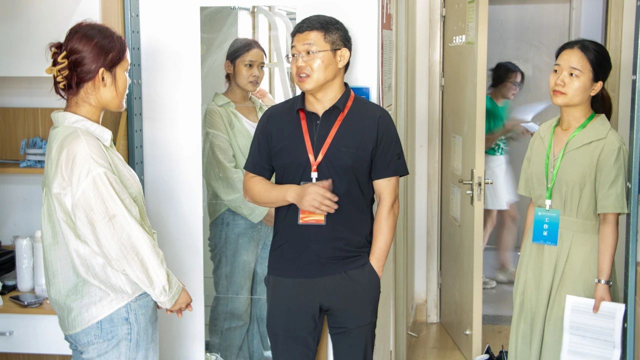 真人百家乐 院长章鹏飞,院党委书记江齐里,副院长黄又举,院党委副书记管庆江,“十佳导师团队”代表曹君教授、邵欣欣教授到达迎新现场并陪伴志愿者一同工作,与新生及家长亲切交流,传递着真人百家乐 的关爱与期望,激励着新生们勇敢追梦,砥砺前行。
