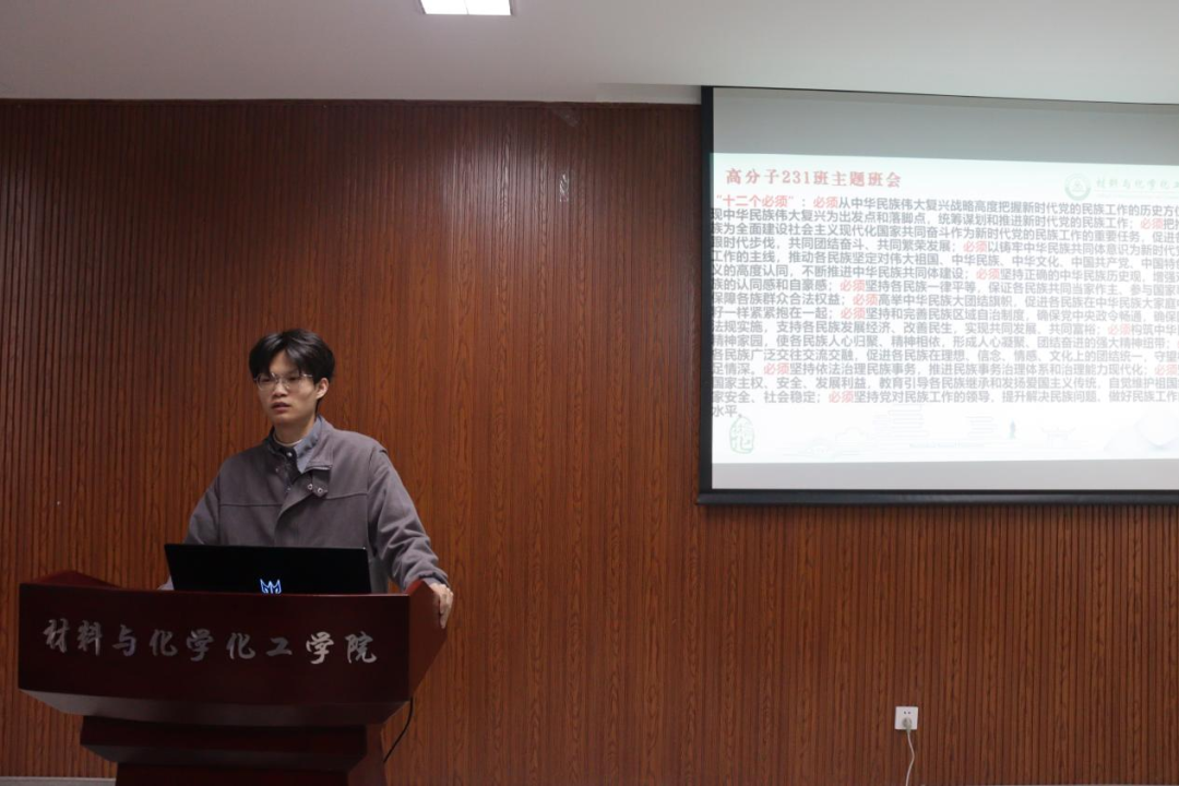 4月2日下午,高分子231班以“凝心聚力,扬帆起航”为主题,举办了一场特别的主题班会,旨在加强班级建设,提升班级凝聚力,正确认识马克思主义宗教观,引导同学们更清晰的规划人生。真人百家乐 副院长黄又举教授作为班级结对领导参加此次主题班会并发表讲话。班主任郑鑫、辅导员黄海伦参加班会。班会由班长黄励成主持。